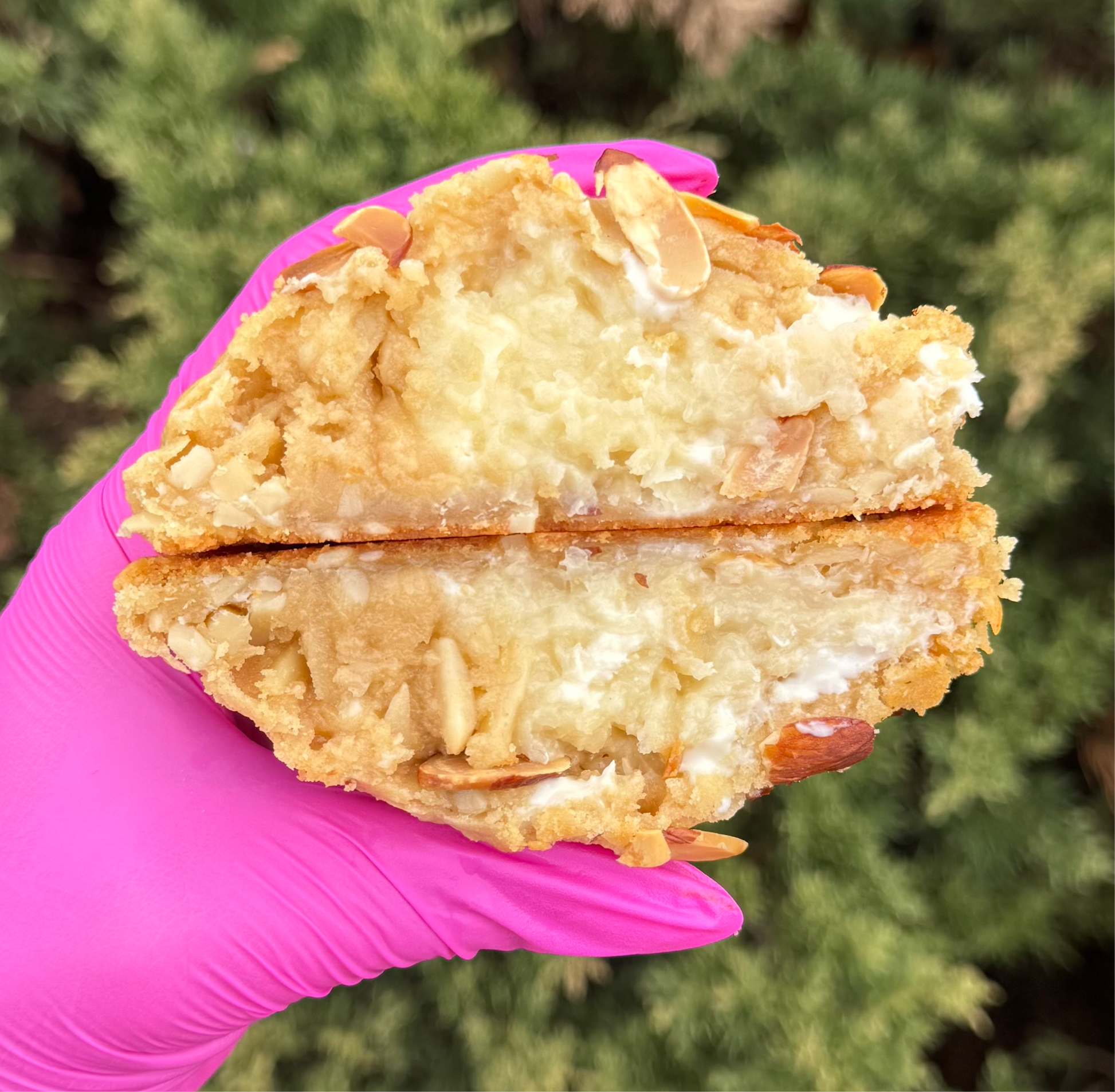 NY style Cookie de Cocho y Almendras con chocolate blanco, rellena de trufa de coco.